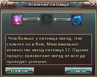 Шаг 4: В случае успеха «ранг» питомца возрастет на одну звезду (максимальное их количество может быть 12), у него повысятся атакующие и защитные характеристики.