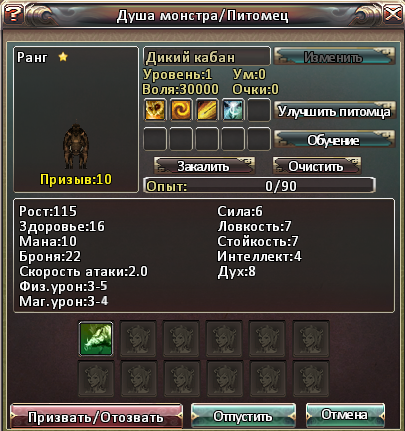 Шаг 5: Закаленного питомца можно вызвать с помощью кнопки «Призвать/отозвать». Иконку боевого питомца для удобства лучше вынести на панель навыков, что значительно упростит ее вызов.